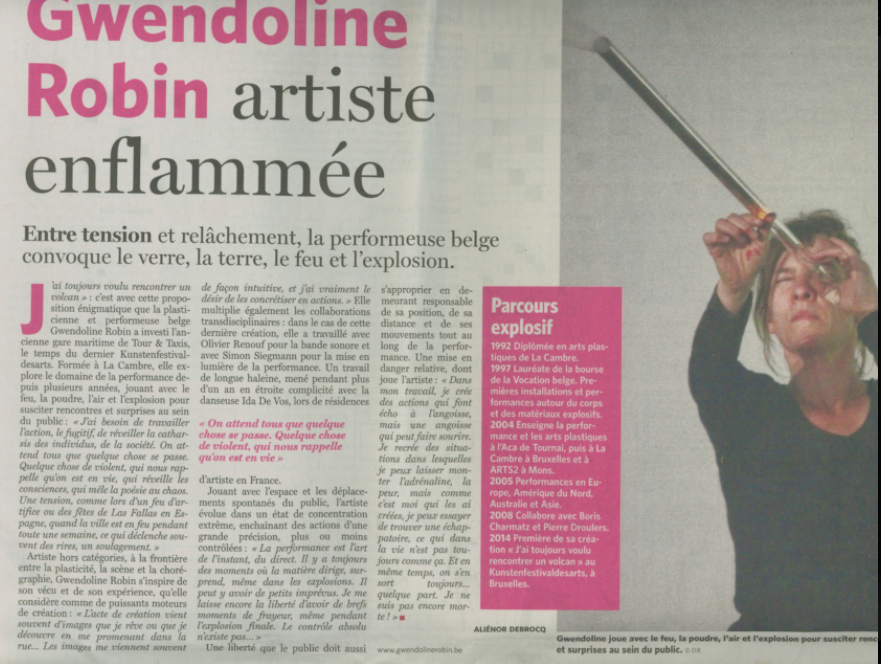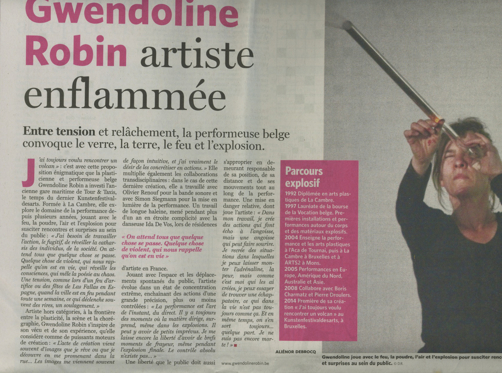 Le Soir, Aliénor Debrocq - Gwendoline Robin artiste enflammée . 2014